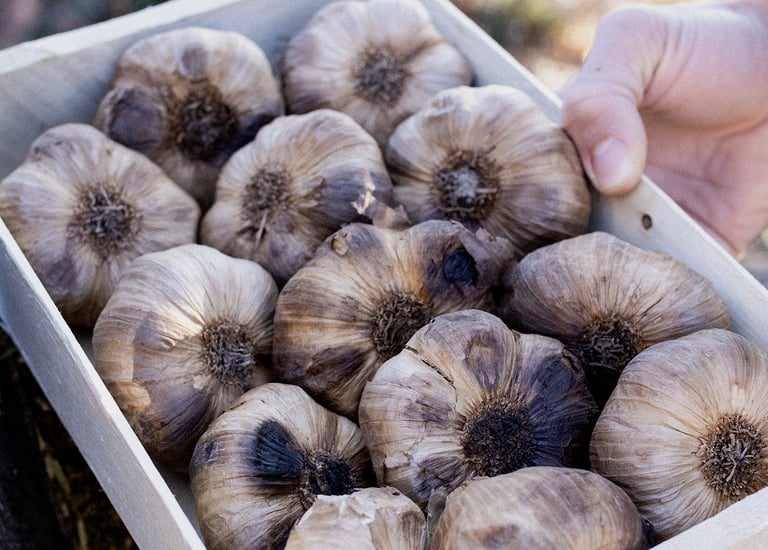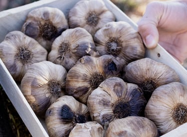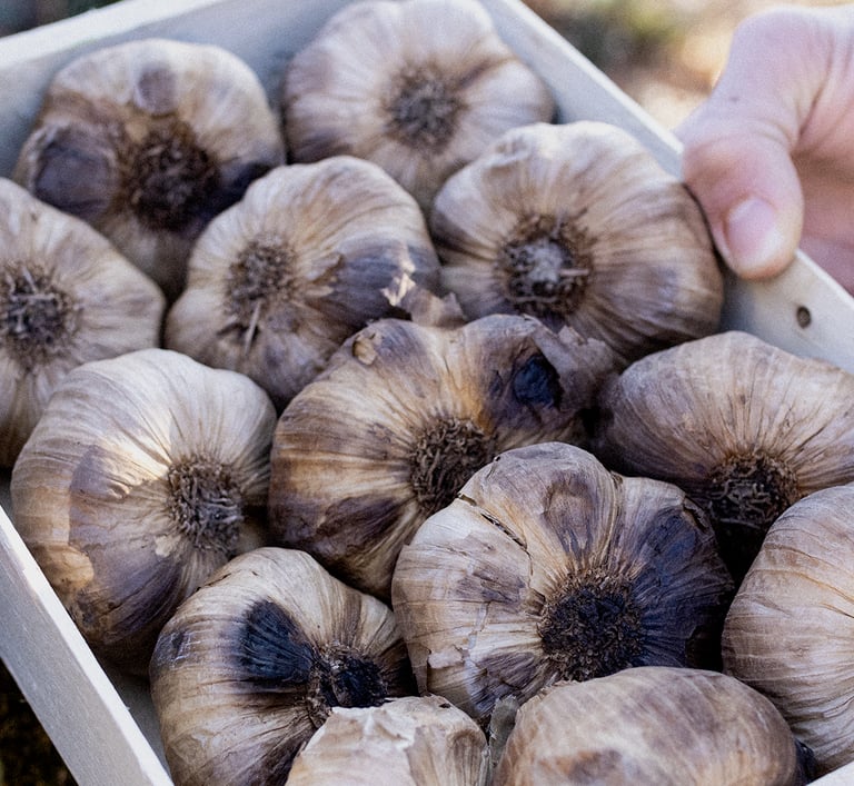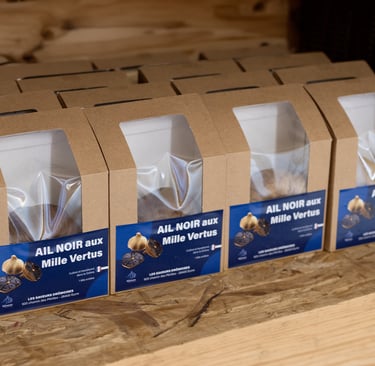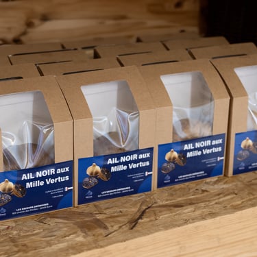 De l'ail noir, en tête ou en pot, soigneusement travaillé pour éveiller vos papilles et sublimer vos préparations. Disponible à la ferme selon les disponibilités mais également en magasins.