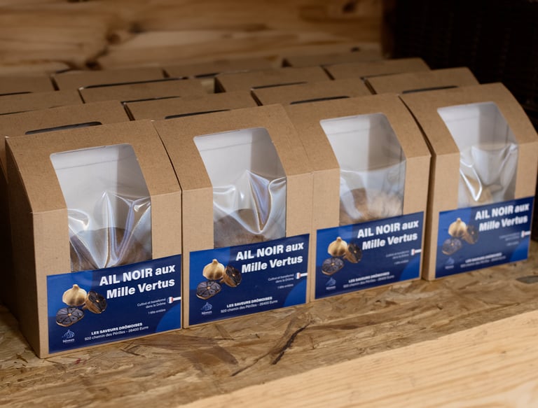 Nos produits phares, tels que l'ail, l'ail noir, l'ail en botte et l'ail en tresse, sont disponibles selon les saisons et peuvent être trouvés non seulement en Drôme, mais également dans toute la France, en fonction de leur disponibilité.